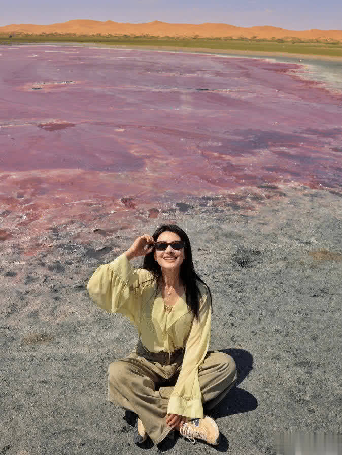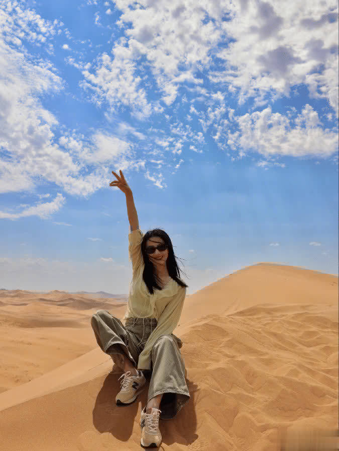 黄色的荷叶边雪纺上衣清新感十足,就是很容易和背后沙漠的背景融为一体。这件衣服日常通勤或者是出去玩穿都很不错的,上衣是一个大方领的设计,不仅显瘦还非常的时髦,宽松的袖子是非常遮肉的,而且这个淡淡的黄色也很显白,黄皮也可以放心大胆的尝试。