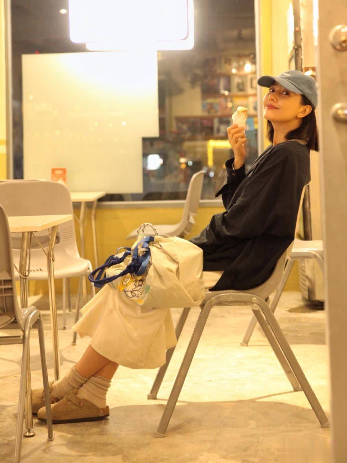高圆圆下半身搭配的是一条棉麻面料的开叉长裙,这种棉麻面料是非常有质感的,同时也会显得人高级感十足。和黑色的开衫搭配在一起,很有大家闺秀的气质了,再加上秀气十足的宝宝,一点都看不出像是当了妈妈的人,反而像是外出写生的大学生。